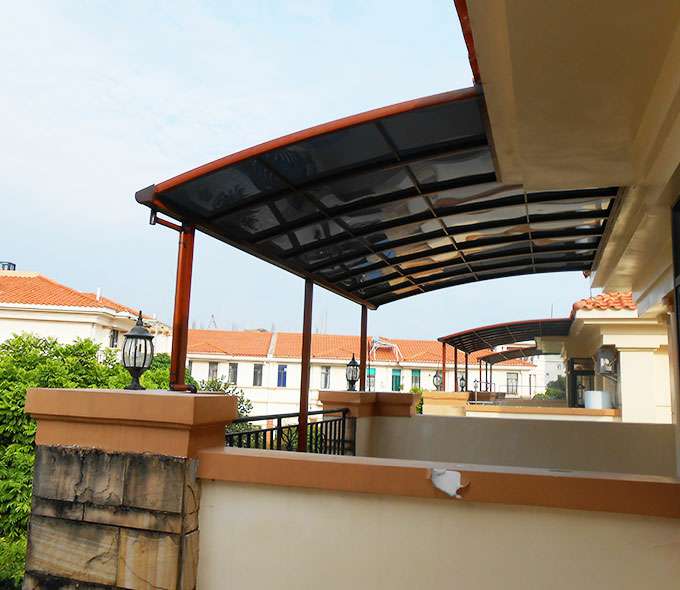 厦门维安绿色农业发展有限公司雨棚系列产品是高强度铝合金和聚碳酸酯板(耐力板)的结合。主体结构全部采用高品质、高强度铝合金材料精加工而成,表面特殊的工艺处理,具备氧化保护,不生锈,不变色,大大提高了雨棚的使用寿命。