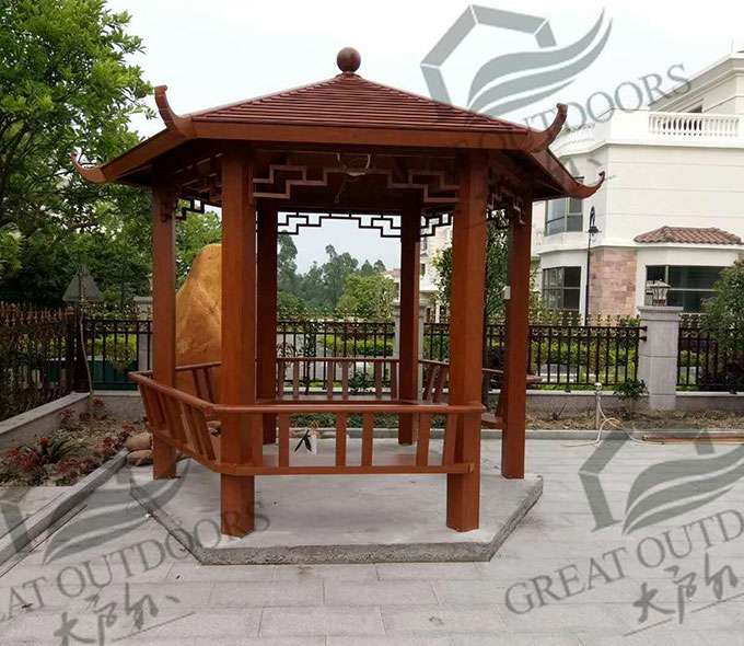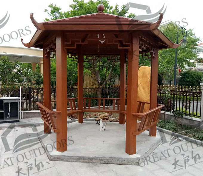 厦门维安绿色农业发展有限公司凉亭系列产品是采用高强度铝合金为原材料,经酸洗铬化,电泳或静电喷涂,木纹转印处理后,精密定制设计,保障安装。它具有防水防潮,不膨胀不变形,防腐蚀,具有逼真的木质感。成为别墅住宅及市政园林等建筑美丽的风景。