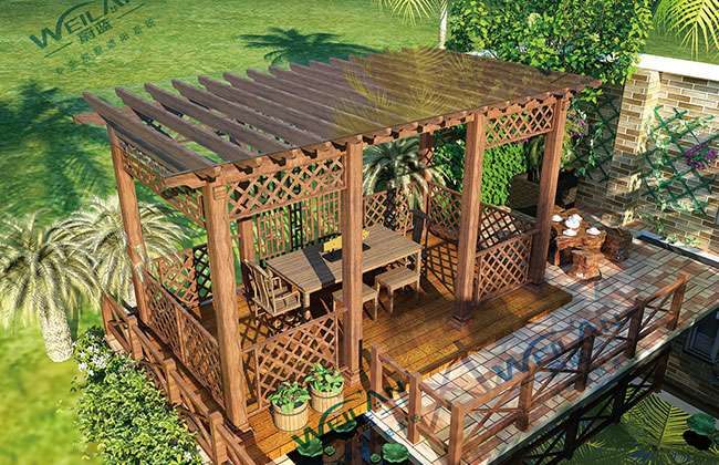 3、 横梁顶面镶木:防止植藤高温烫伤